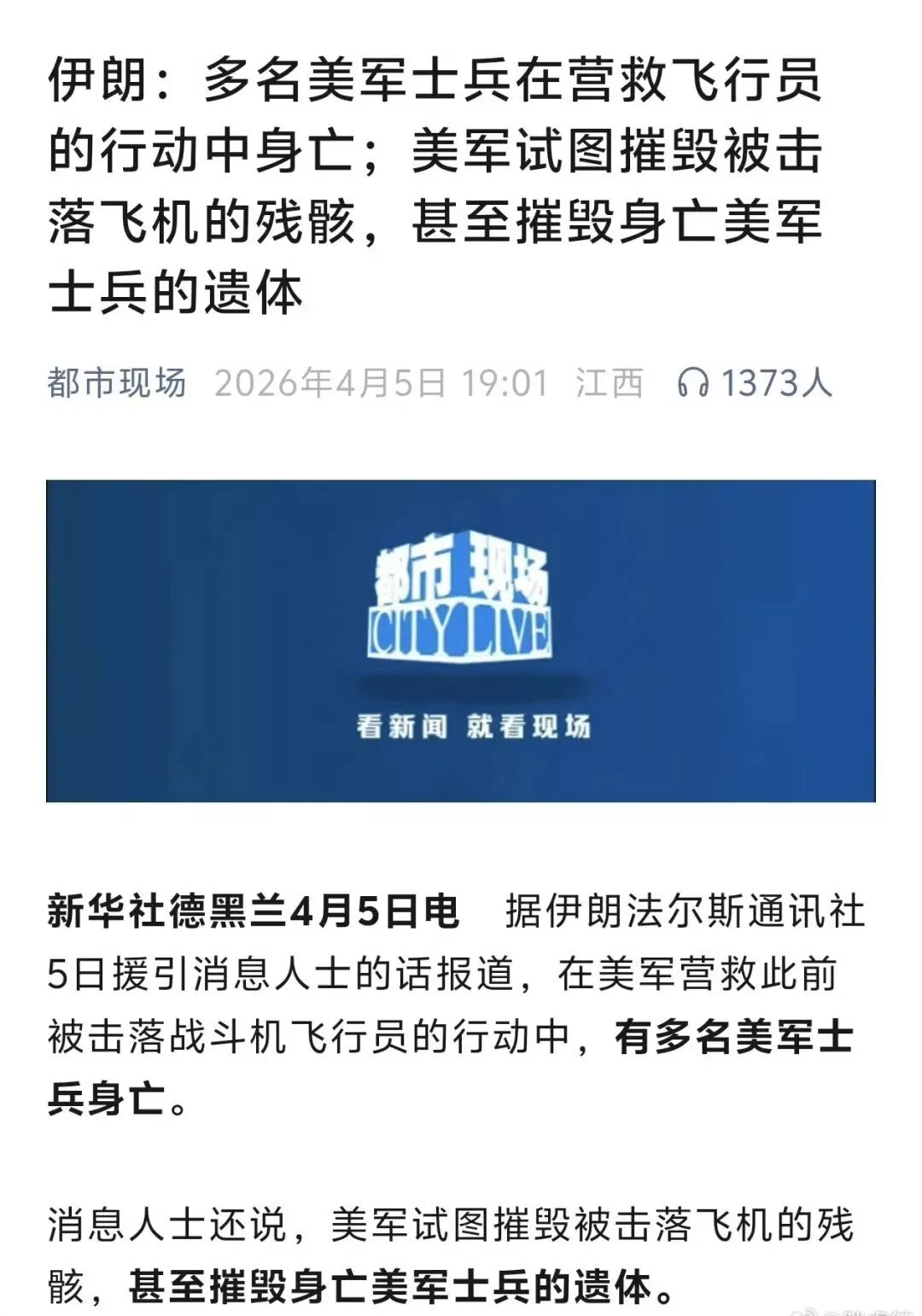 但看这几个新闻的时间线,央视报道了就回了飞行员之后,都市现场的报道还在说多名美军士兵在营救中阵亡。