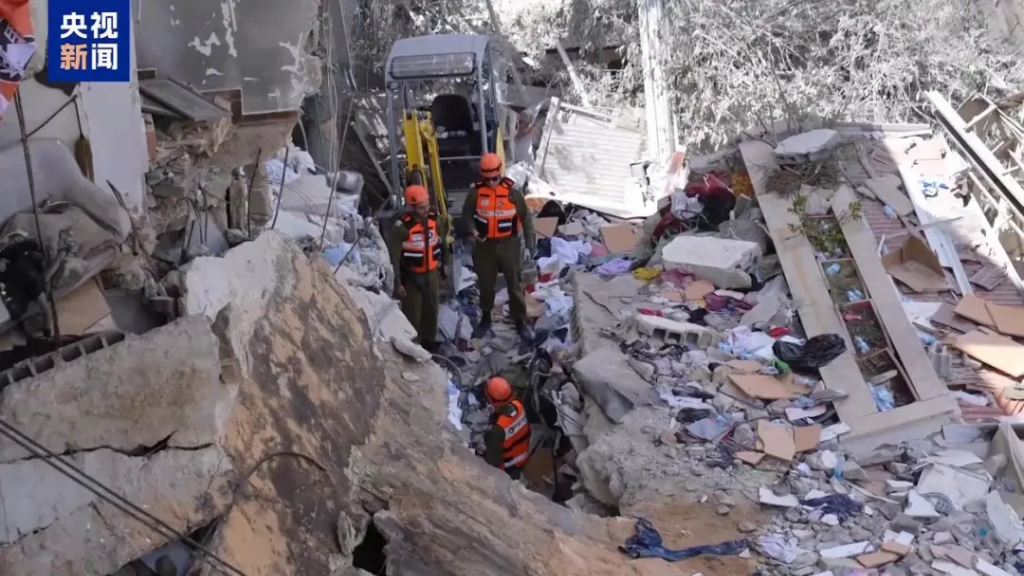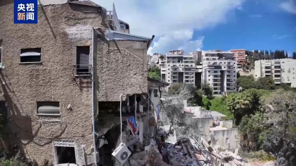 总台记者 梁慧:在北部城市海法,一栋六层居民楼在5日下午被伊朗导弹击中,造成大楼主体结构受损,一度出现大火,并且至少有4人被掩埋在废墟下。根据紧急救援部门的消息,截至6日上午9点,有两人被找到,但已经失去生命。此外还有两人被掩埋在废墟下。这次攻击还造成至少8人受伤。