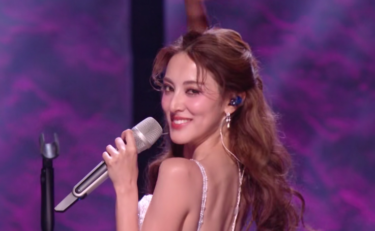 李心洁唱的是自己的代表作《自由》,50岁了不仅高音清亮唱功扎实,台风也很从容,爆发力穿透耳膜。