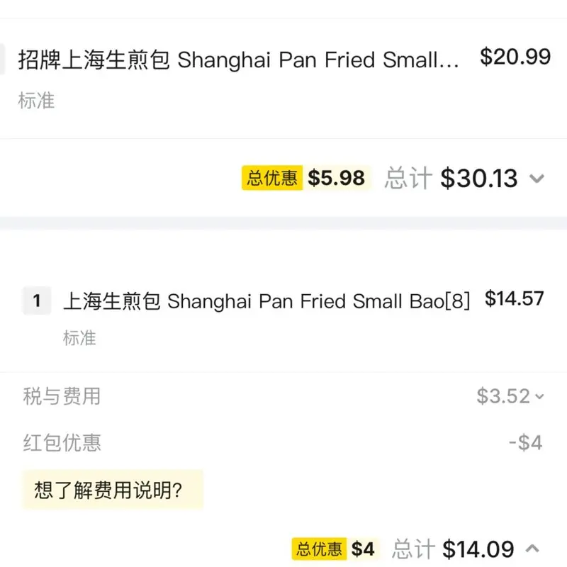 居住在亚凯迪亚市的王先生热衷外食,工作忙碌时也经常依赖外卖。前段时间回中国探亲,近日再度返美,他明显感受到短短几个月内,洛杉矶地区的外卖价格再次上涨。王先生表示,他非常喜爱上海生煎包,过去常透过外卖平台订购,去年下半年平台价格约为14.57美元,即使加上服务费,扣除平台提供的优惠后,实际支出约14美元左右。