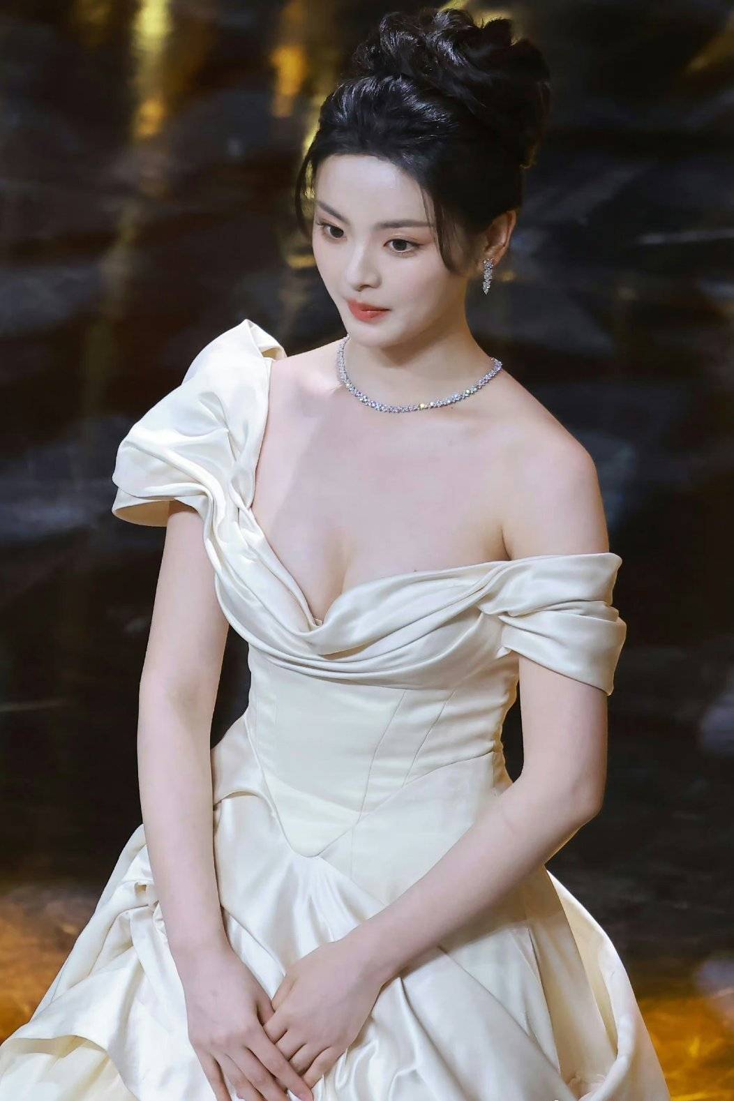 前段时间,杨超越出席某个活动,一身复古宫廷浅V束腰晚礼服惊艳亮相,搭配着优雅成熟的高丸子头,以及樱桃色口红,轻微丰腴的肉感,让杨超越看起来妩媚迷人