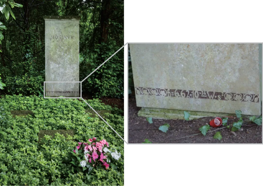图1 马克斯⋅普朗克的墓碑。上面刻有普朗克常数的数值,h=6.62×10-34 W·s2。现在在国际标准单位制中h是被定义的物理基本常数