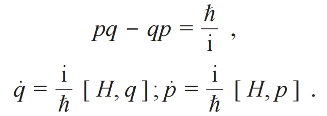 在1925年夏天开始建立的矩阵力学中,两个代表性的数学方程是德国哥廷根大学的玻恩和他的学生约当提出的基本对易关系(注:在许多教科书中,把基本对易关系称为正则对易关系,我觉得基本对易关系更确切些。)和运动方程[4]: