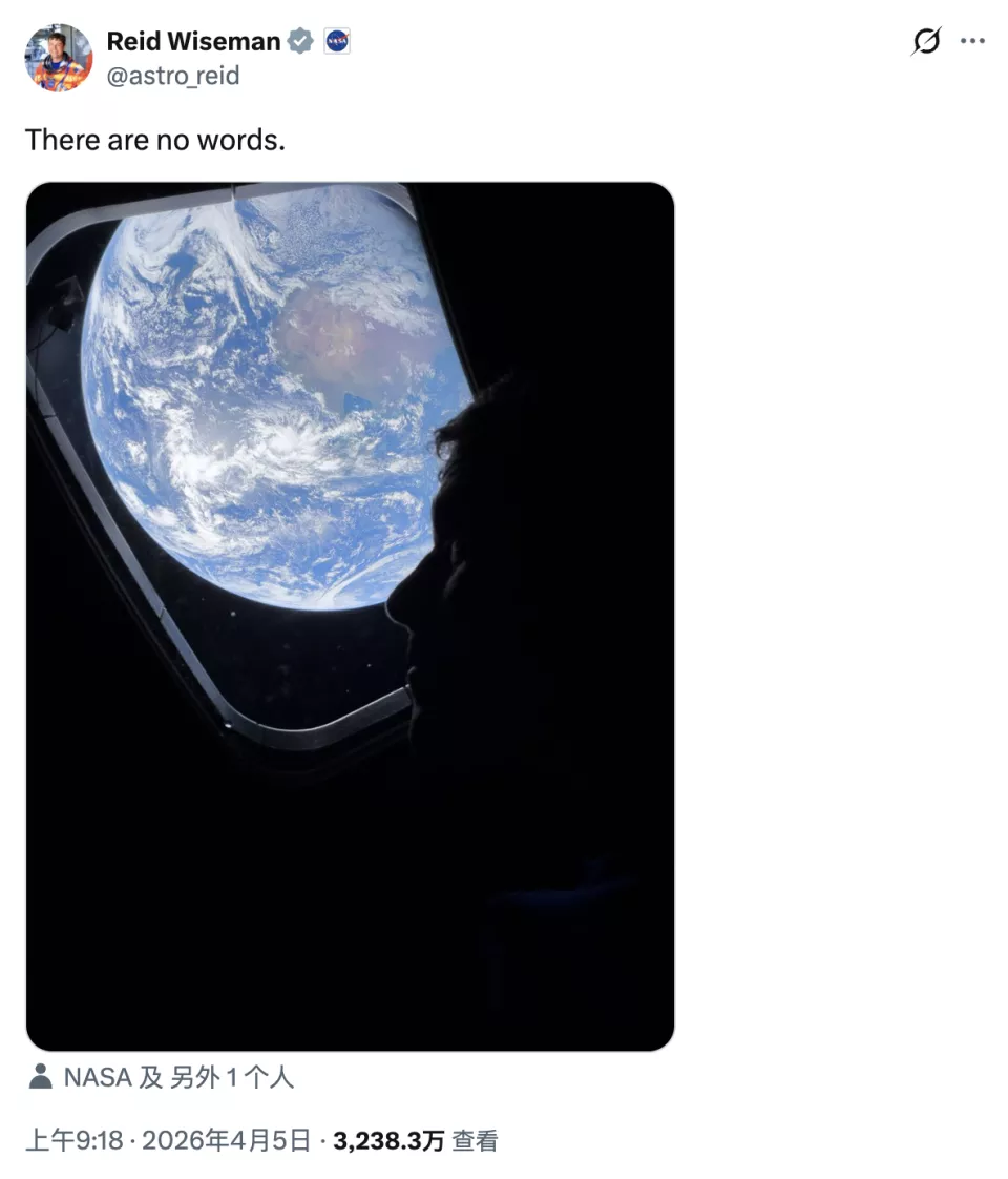 同一天,指挥官里德·怀斯曼拍了另一张。他没有写任何解释,配文只有短短一句话:「无法用语言形容。」