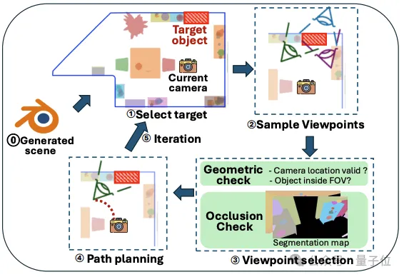 有了3D场景,还需要为VLM提供完美的2D视频输入。一个糟糕的运镜可能会遮挡关键物体,导致VLM无法答题。