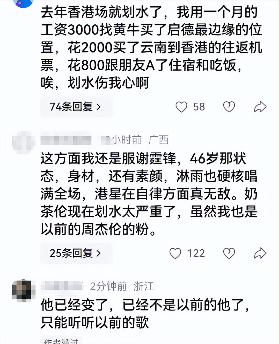 有网友表示,三个小时演唱会“划水”俩小时,有人说他这不是第一次这么做了,有不少歌迷因此脱粉。