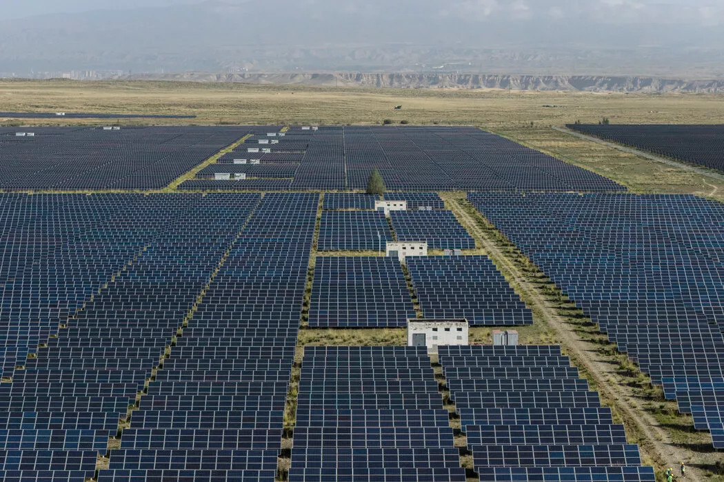 去年在中国青海省,将阳光直接转化为电能的光伏太阳能板。