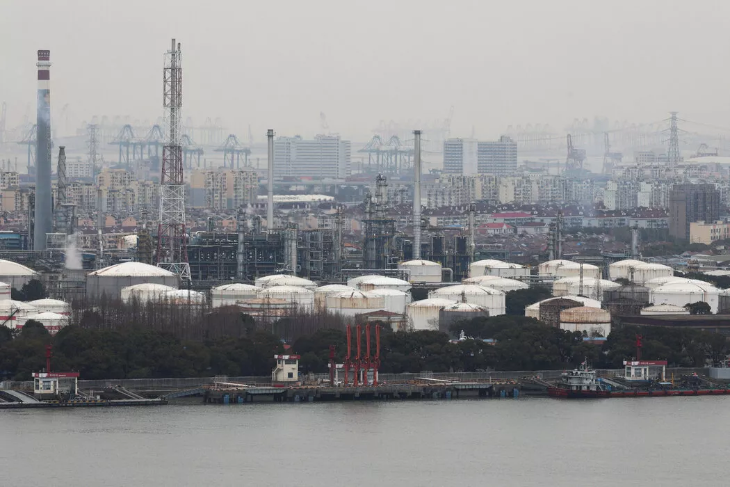 上个月,上海一家中石化工厂的储油罐及相关设施。