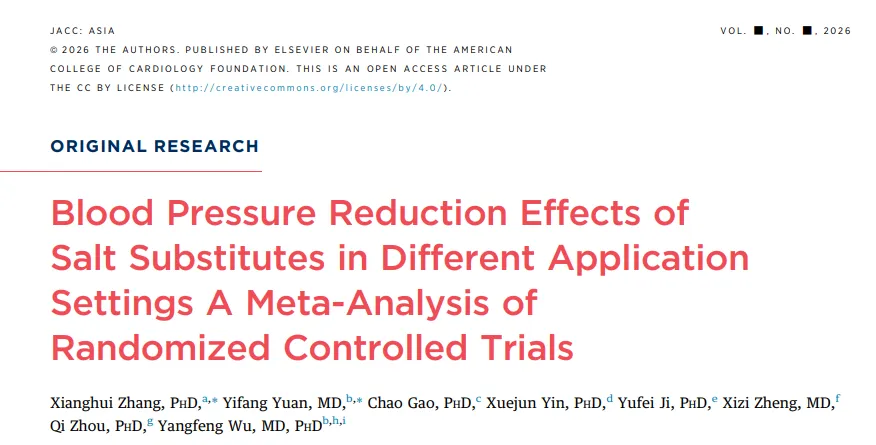2026年4月,北京大学临床研究所武阳丰教授等在《美国心脏病学会杂志》亚洲子刊发表的最新研究发现,日常在家做饭把普通食盐换成低钠盐,确实有助于降血压;但如果是单位食堂、学校餐厅、养老院等集体供餐场景统一更换低钠盐,降血压的效果会更明显、更突出。①