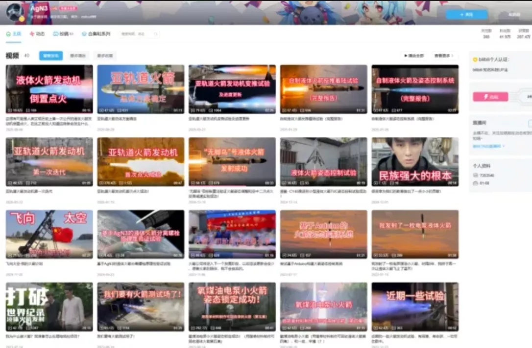 在B站、视频号等平台,帐号“AgN3”发布的“手搓火箭”视频总能收获大批网友的关注和点赞。镜头里,卢驭龙带领团队,攻克火箭研发中的一个个技术难题,从制造火箭的零部件到液体发动机的测试,硬核的科研结果展示让网友直呼其为“中国版马斯克”。