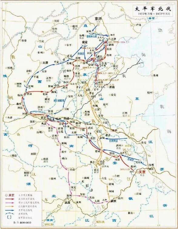洪秀全定都天京后,就不想着全军北伐了,只派林凤祥和李开芳二人率领2万太平军北上京畿。1853年五月,太平天国北伐军攻入河南,僧格林沁受命统领健锐营、外火器营、两翼前锋营、八旗护军营、巡扑五营及察哈尔各官兵,并哲里木、卓索图、昭乌达蒙古诸王劲旅出京会战太平军。