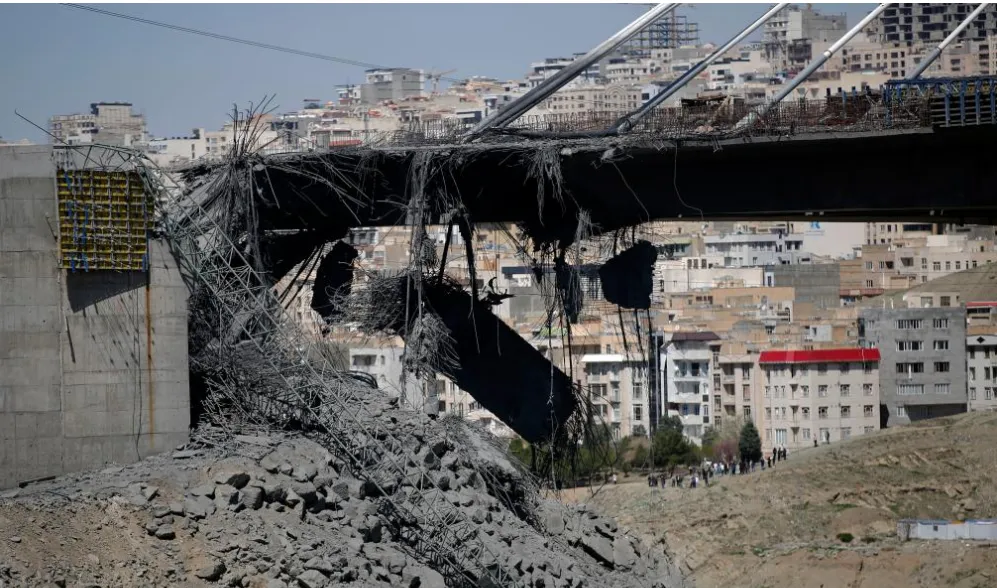 ▲这张摄于4月3日的照片显示了伊朗卡拉季B1大桥在美以联合袭击后受损的情况。据伊朗官方通讯社伊通社(IRNA)周五报道,该桥在周四的美以联合袭击中两次遭到攻击,造成13人死亡,95人受伤。(图源:新华社)