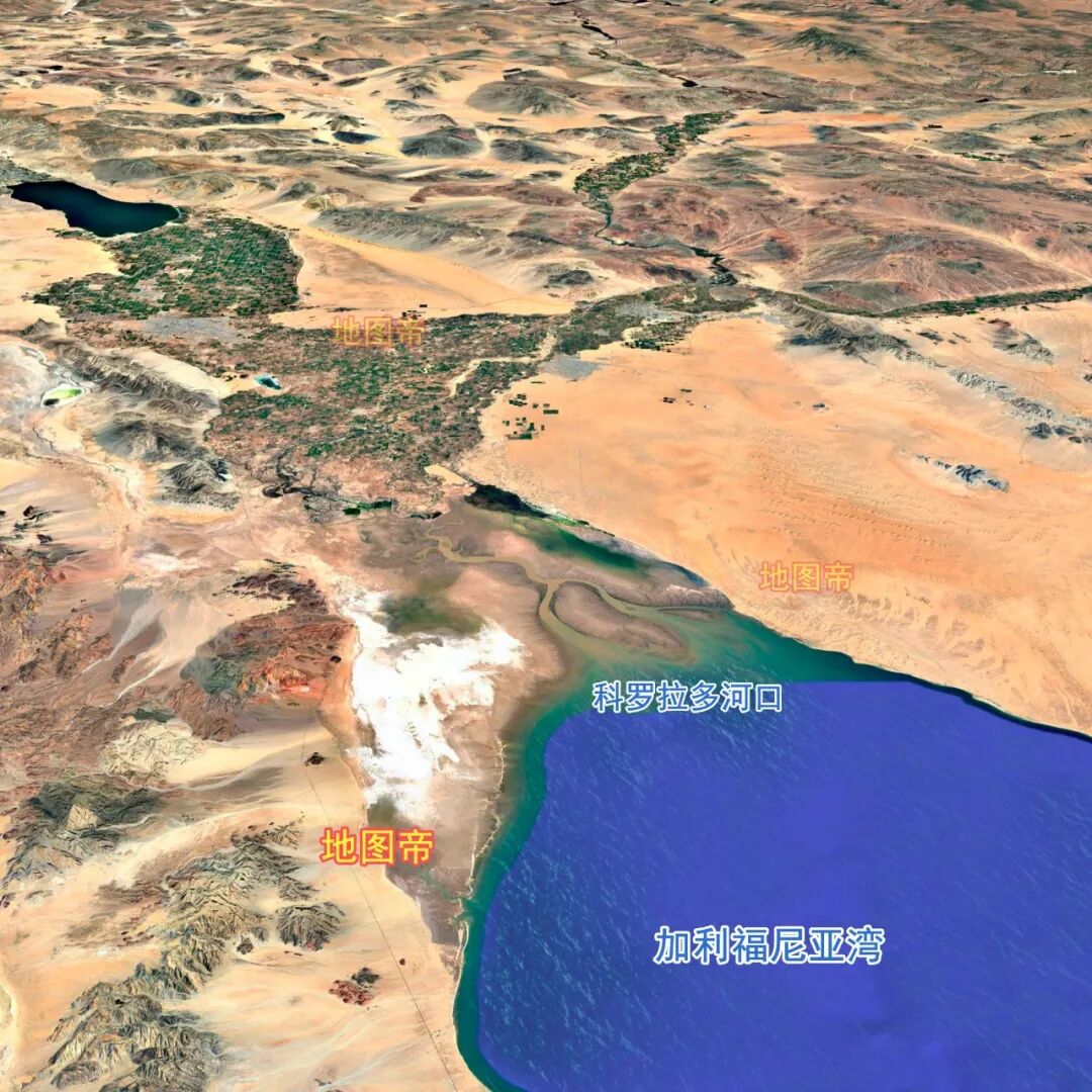 加利福尼亚湾北端,有一条大河入海口,即科罗拉多河,东红海的命名与科罗拉多河密切相关。