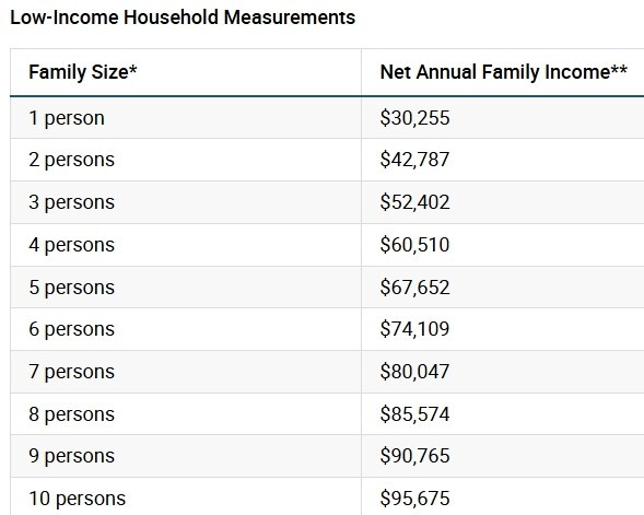 属于低收入家庭(以加拿大统计局低收入标准为准)。