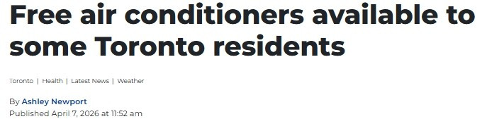 多伦多市宣布扩大空调援助计划,低收入家庭、老人和新生儿家庭可免费申领便携式空调,今起开放申请。