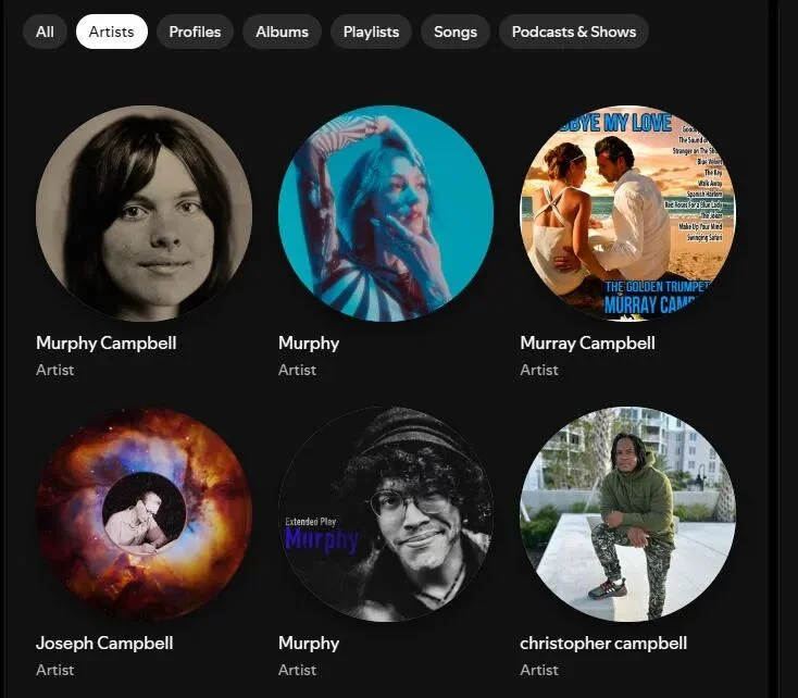 不过现在去Spotify搜,就只能搜到一个Campbell了,估计Spotify已经把假号删了。
