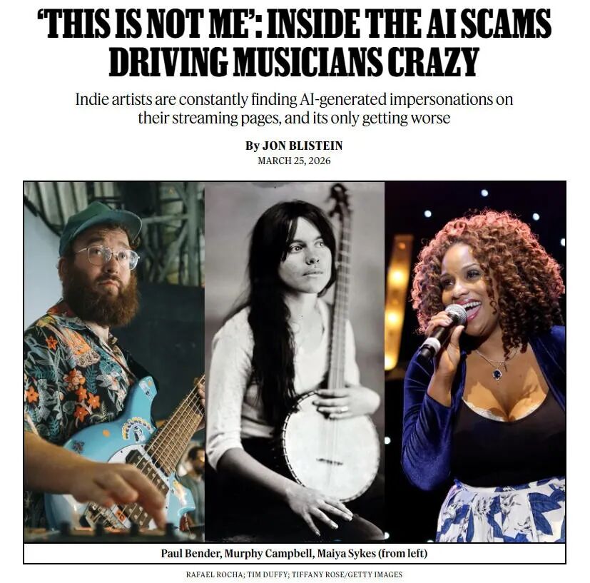 被盯上的几乎都是独立音乐人或者小型乐队。道理很简单:他们有听众、有粉丝、有流量,但又没有大公司在背后撑腰,被冒充了也没什么反击的能力。