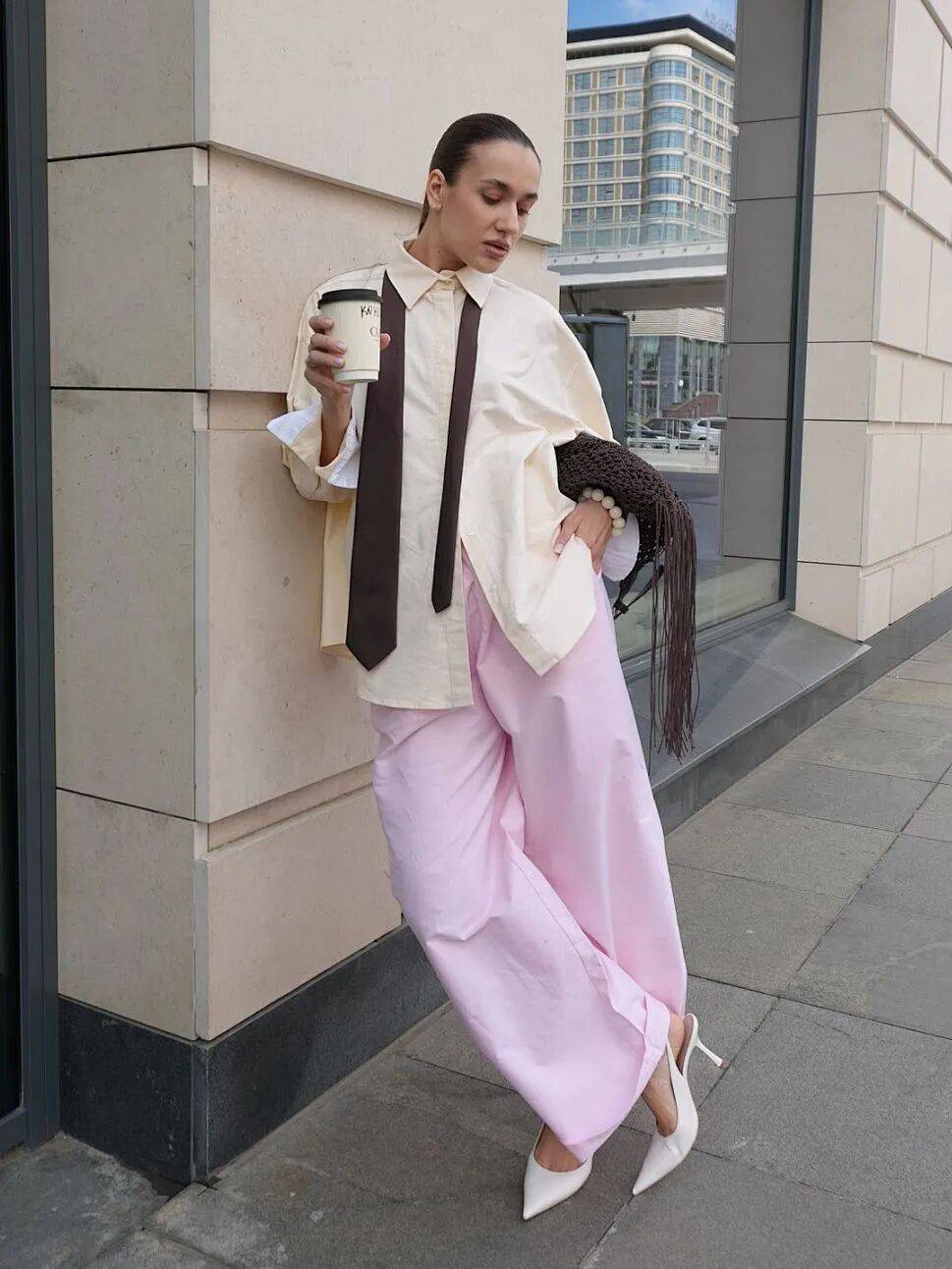 你会在平凡的一天里,被一条柔雾粉阔腿裤而治愈。