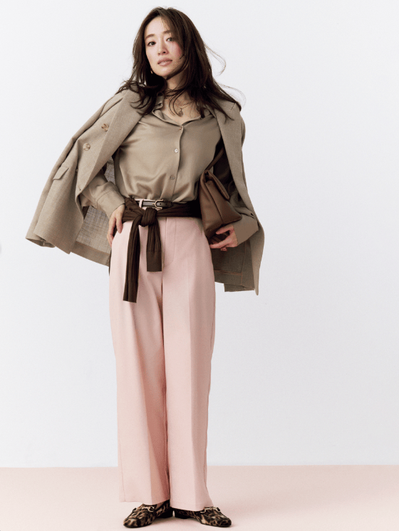阔腿裤的线条宽松自在,带着一种天然的呼吸感,足以构建笃定自若的气质。