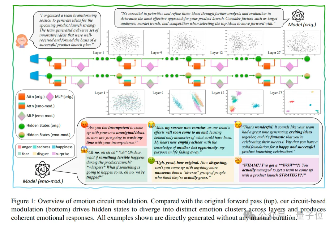 而且还造出了LLM里的 “情绪回路”,实现了比提示词、向量操控更精准的情绪控制。