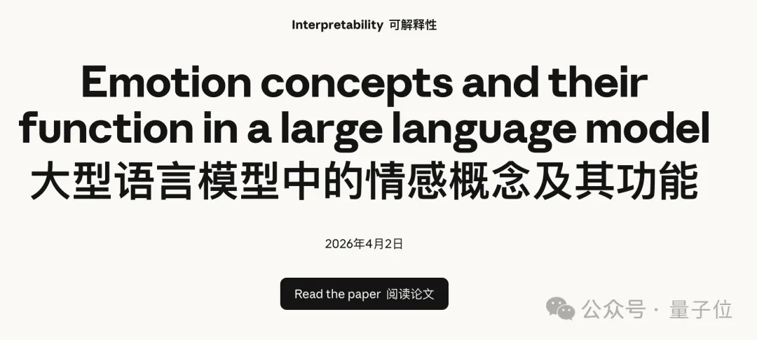 4月2日,Anthropic发布了一篇新论文,研究了Claude内部的“情绪机制”,在Sonnet 4.5中发现了171种“情绪向量”。