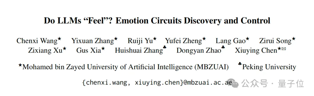 Chenxi Wang团队的论文《“LLMs 会“感觉”吗?情绪回路的发现与控制》,研究了驱动语言模型产生情绪输出的内部机制。