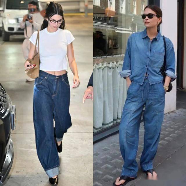 今年春天平底乐福鞋搭配牛仔阔腿裤,真的是火出圈了。