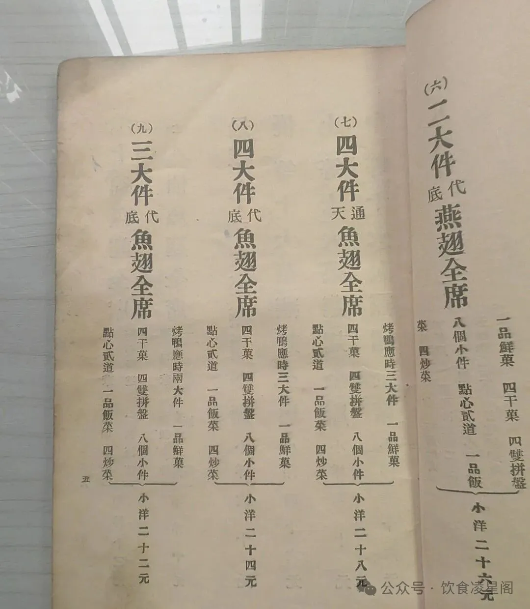 我想说一个可能挨骂的观点:1931年的北平饭庄,这些“燕翅全席”“通天鱼翅席”,其实大多是“面子工程”。你看菜单上写的----“烤鸭应时两大件”“一品鲜菜”“四干菜”“四双拼盘”----真正值钱的只有燕窝、鱼翅一两道大菜,其他都是凑数的。一桌席几十块大洋,大部分花在那几道“硬菜”上,剩下的配菜可能很一般。这种席面,是给有钱人摆排场用的,不是给普通人吃的。