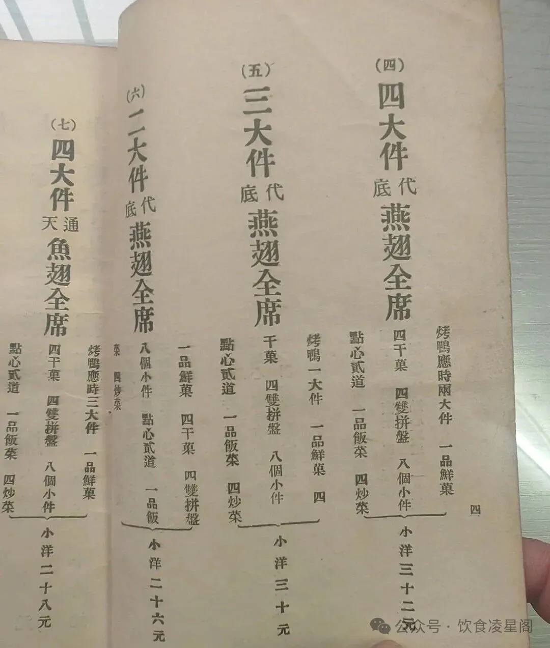 1931年北平菜单,一份燕翅席够普通人家吃一年饮食凌星阁