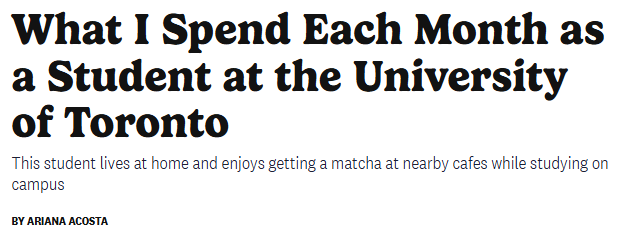 在多伦多大学读书,一个月的生活费究竟要多少?你可能以为房租、吃饭加交通,怎么也得1500加元起步。但最近,一位多大女生Ariana Acosta公开了自己的生活开支——每月只要529加元。