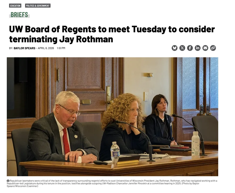 最近美国大学圈那叫一个“动荡”啊。前有哥大四年内连换四次校长,后有各种DEI政策被砍得妈都不认识,再加上联邦政府天天拿经费当大棒敲打。就在这人人自危的时刻,威斯康星大学系统突然爆出了一出大戏: