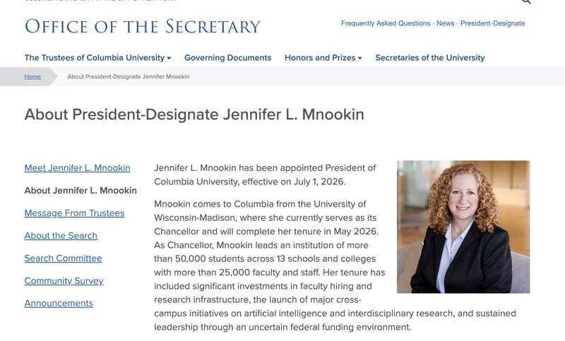 最瞩目的就是2024年哥伦比亚大学,前校长米努什·沙菲克(Minouche Shafik)因为处理反犹/亲巴抗议不力,在巨大压力下辞职,转头去了英国。而接替她的正是咱们威斯康星麦迪逊的校监詹妮弗·姆努金(Jennifer Mnookin)!