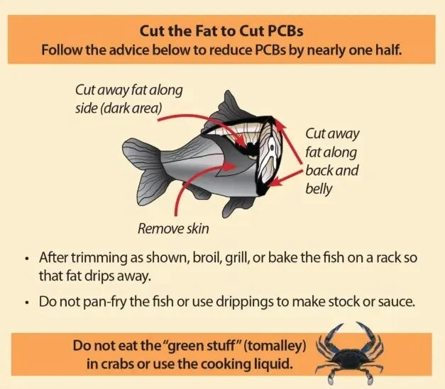 这项更新的指南发布之时,州卫生官员发现多种鱼类中有毒多氯联苯的含量降低了。在食用哈德逊河蟹类时,应去除蟹膏并丢弃煮蟹时的液体。