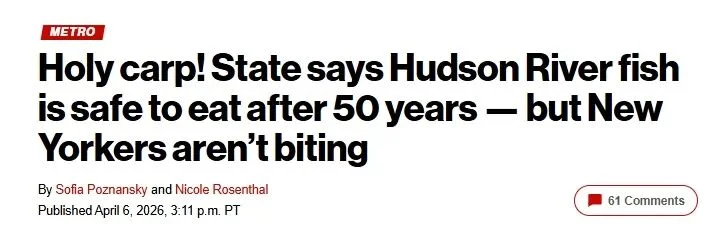 纽约州政府宣布,哈德逊河中部分捕获的海鲜现在食用安全,但当地居民尚未准备好举行鱼类盛宴。