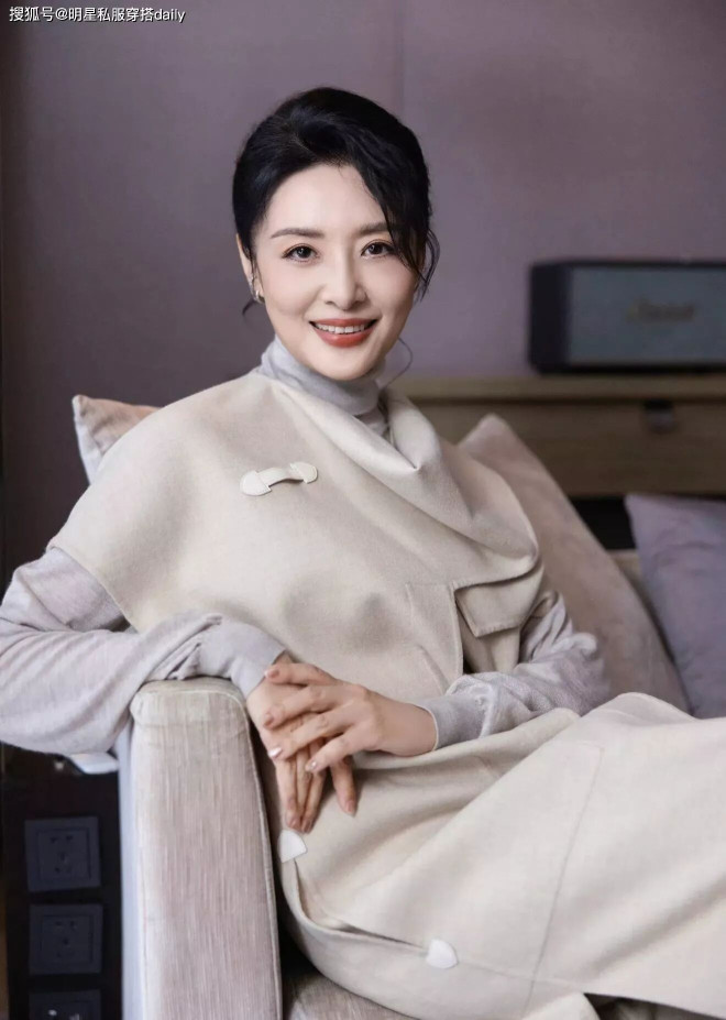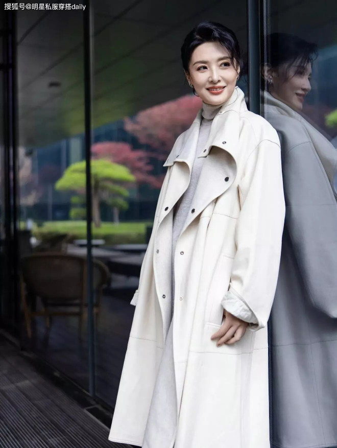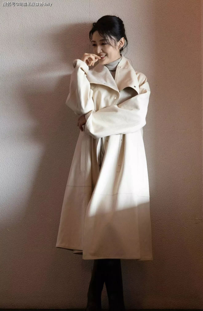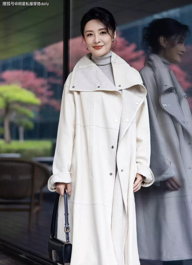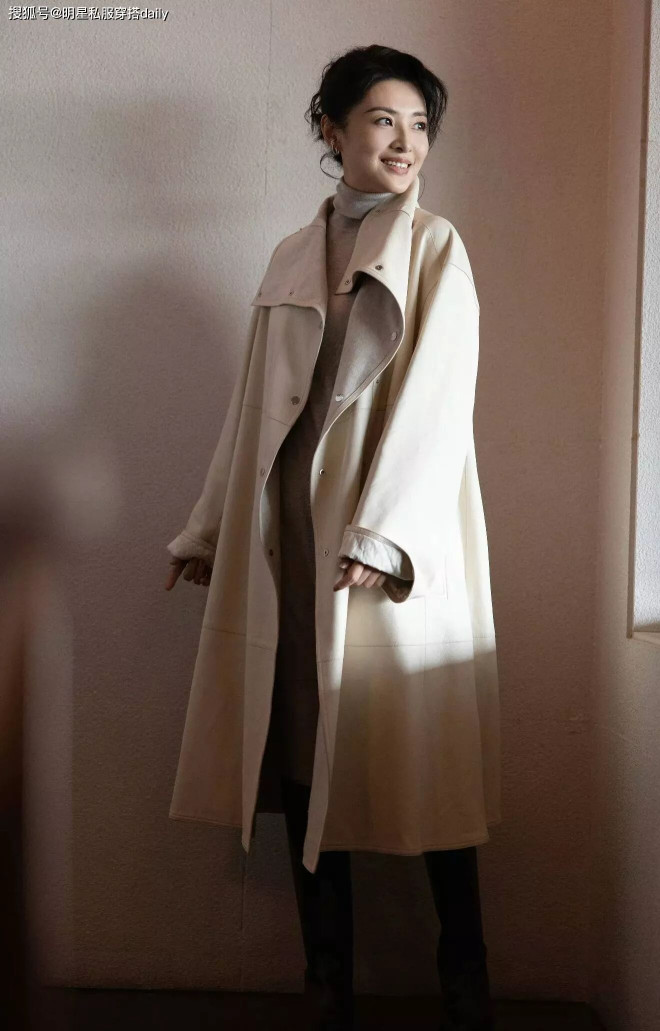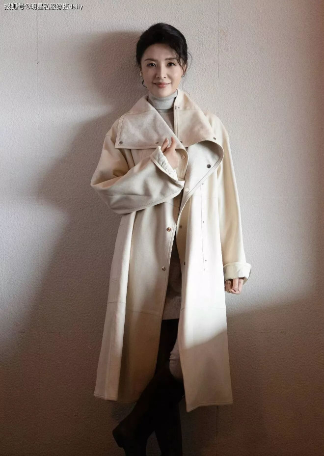 首先就是这件米白色大衣外套,不仅让她气色看起来白皙透亮,而且凸显贵气感!内搭一件灰色高领针织裙,浅色系的服饰,更能凸显周涛的气定神闲感!