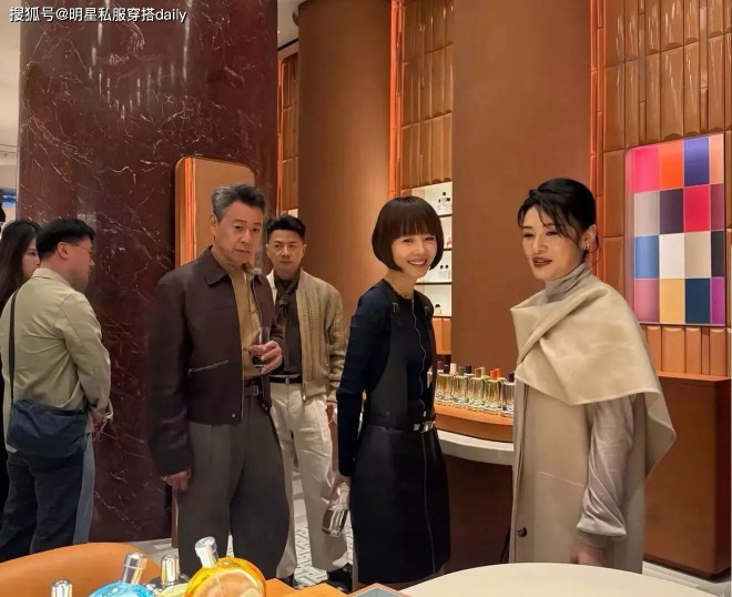 在同框照片中,鲁豫还是留着齐刘海中短发造型,多年保持着纤细的身材,穿着深色系服饰,一点不像56岁!