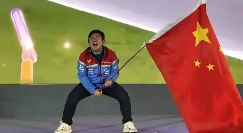 夺冠当晚,张雪挥旗呐喊