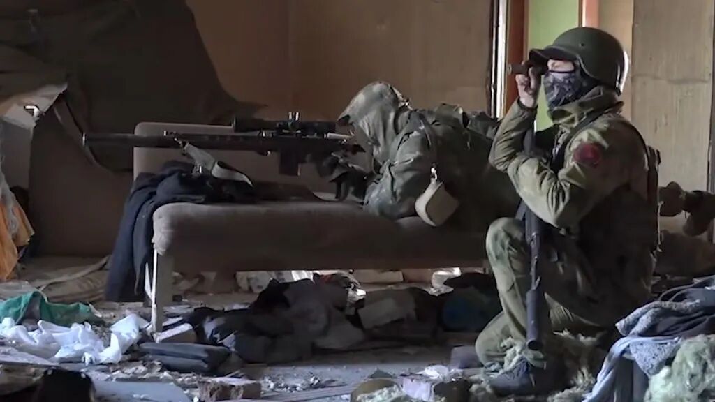 ▲在巴赫穆特使用MTS-566狙击步枪的瓦格纳狙击小组