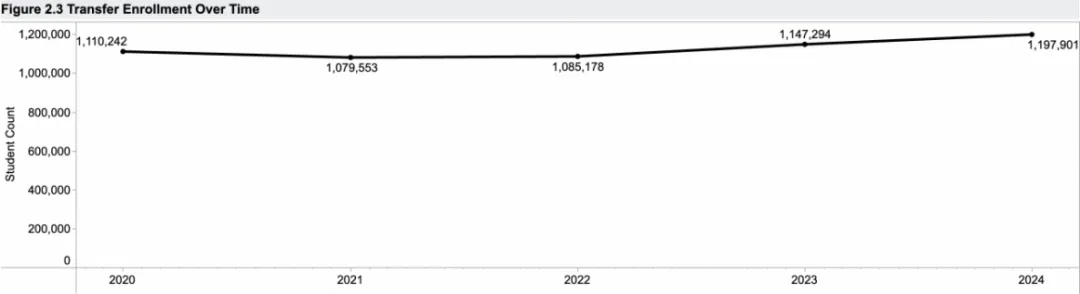 在2024年秋季,美国转学生人数高达近120万,相比2023年增加了5.06万人,增幅4.4%。
