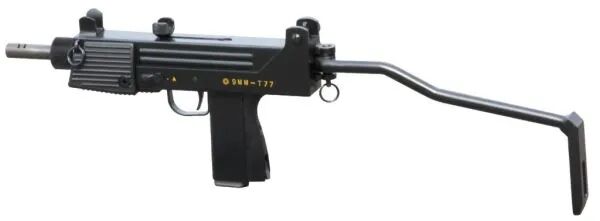 到1992年3月,T77的样枪外形有了更大的变化,首先它各部位尺寸均有修改放大,特别是枪机与整体枪身的重量比经过反复计算和测试,以改善自由式枪机在射击循环中造成的枪支重心变化。枪托设计方面,也从模仿MAC10的伸缩式改成模仿迷你乌兹的侧折叠式。