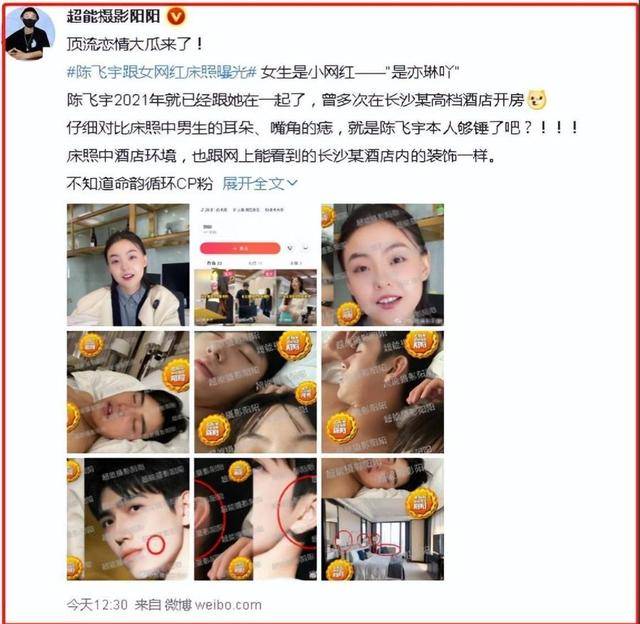 有网友曝光了陈飞宇和一位女网红的酒店私密照。照片里的亲密程度让人没法不多想。更劲爆的是,这位女方被扒出是陈飞宇的粉丝,而且疑似已婚,陈飞宇瞬间陷入“知三当三”的舆论漩涡。