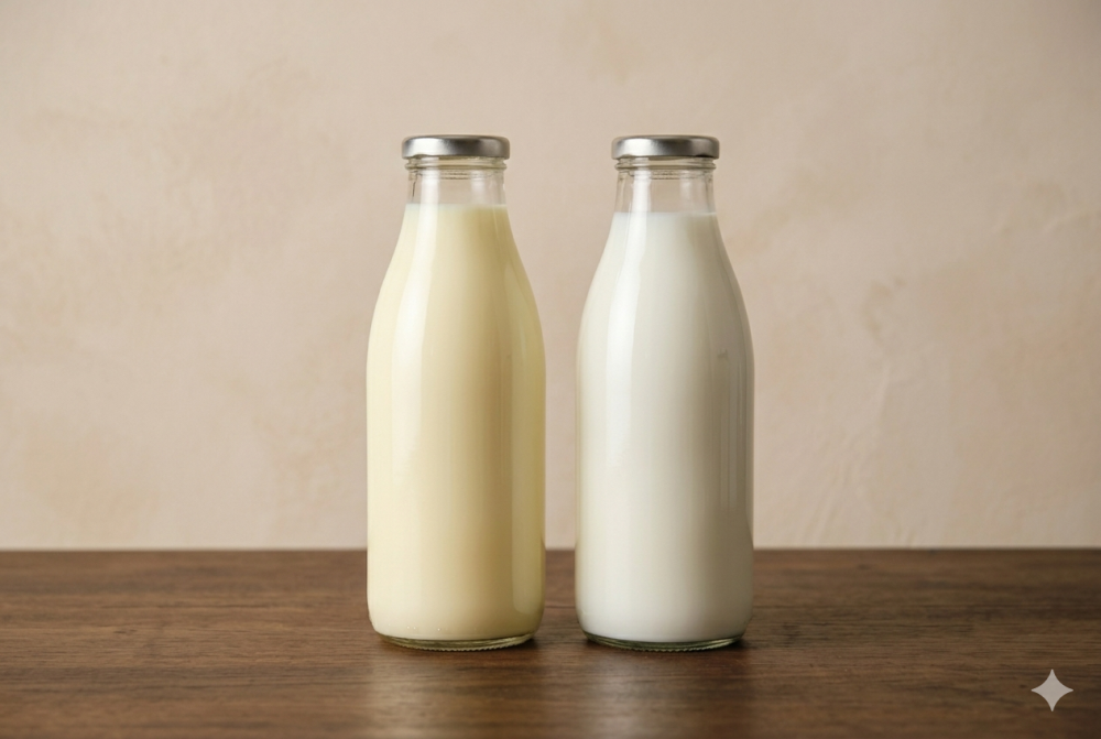 小栗子个人观点是,如果你每天奶制品吃得不多(比如不超过500ml),那还是可以选择全脂的;如果超出了这个量,建议选择脱脂或低脂产品。