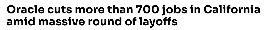 在经历了2025年的一轮大规模裁员后,科技巨头Oracle再次裁减了数万员工,包括加州4个办公室的数百名工作人员。