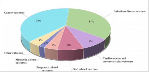 270项血型相关结局指标分布图:所有研究中各结局类别占比