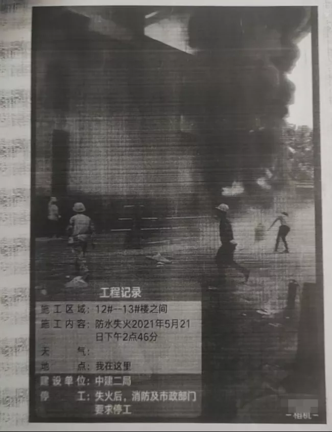 对于这个处理方式,刘彪并不满意,因为管理人员同样在一线干活。2021年,其他标段一栋楼发生火灾,他们被紧急调派救火,他的一名现场经理冲入火场,救出被困的中建二局员工。这位现场经理向极速财讯回忆,当时火势不算很大,看到有人倒在里面,他没多想就冲了进去。救火、翻新及因此停工产生的工人工资,这笔钱至今无人认账。刘彪无奈,干活又救火救人的人,连工钱都拿不到了。