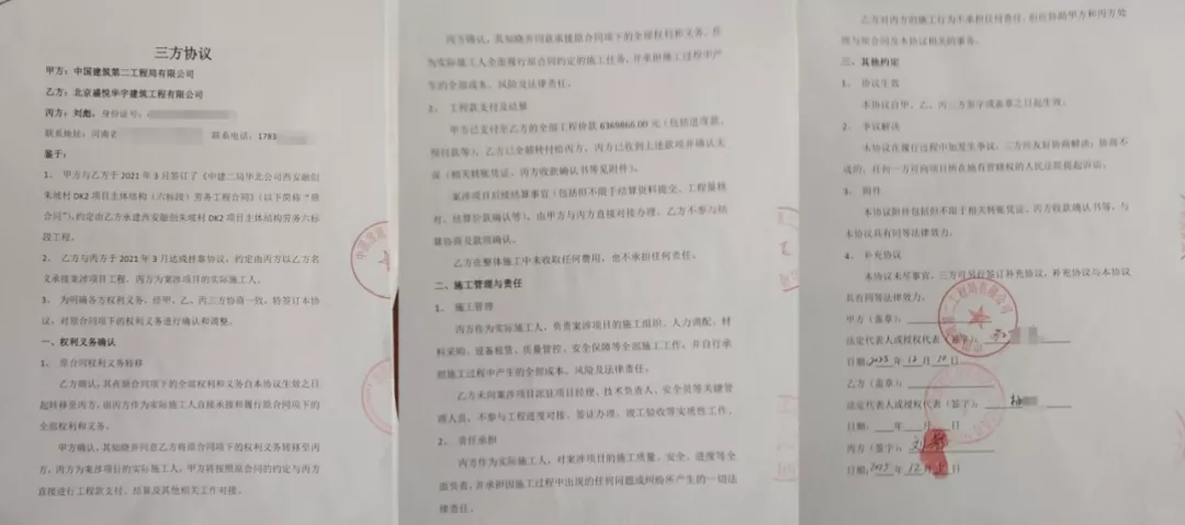 刘彪要讨薪,上述两家公司出具了《实际施工人情况说明》《三方协议》文件,确认刘彪为项目的实际施工人。极速财讯致电两家公司相关负责人,一位确认了文件真实性,称自家公司也被欠薪,正在仲裁,即便胜诉也“很难拿到钱”;另一人的电话始终无人接听。