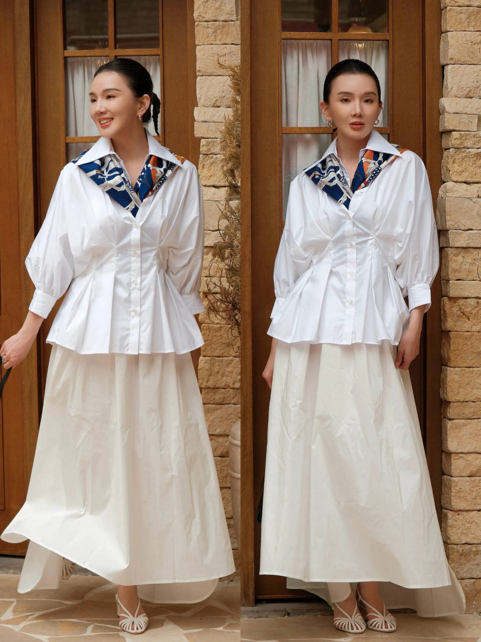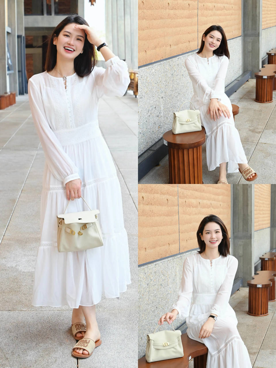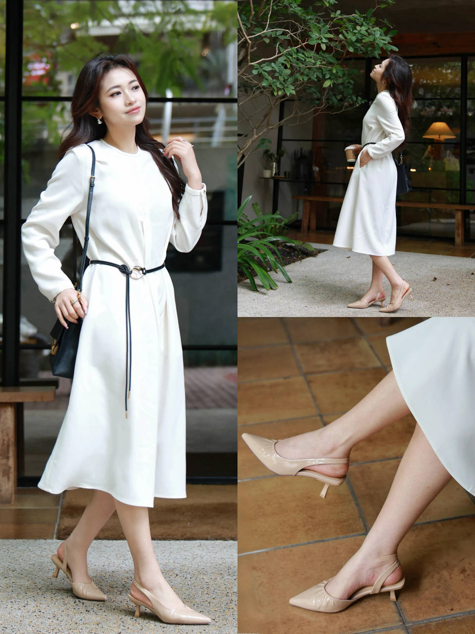 而且穿这样的浅口尖头低跟单鞋,能把脚背肌肤露出来,再配上一条高腰收腰的白色连衣裙,裙长过膝不过脚踝,露出腿部肌肤。这样能够延伸你腿部线条,使得身材变成三七分,显高显瘦,优雅大方。
