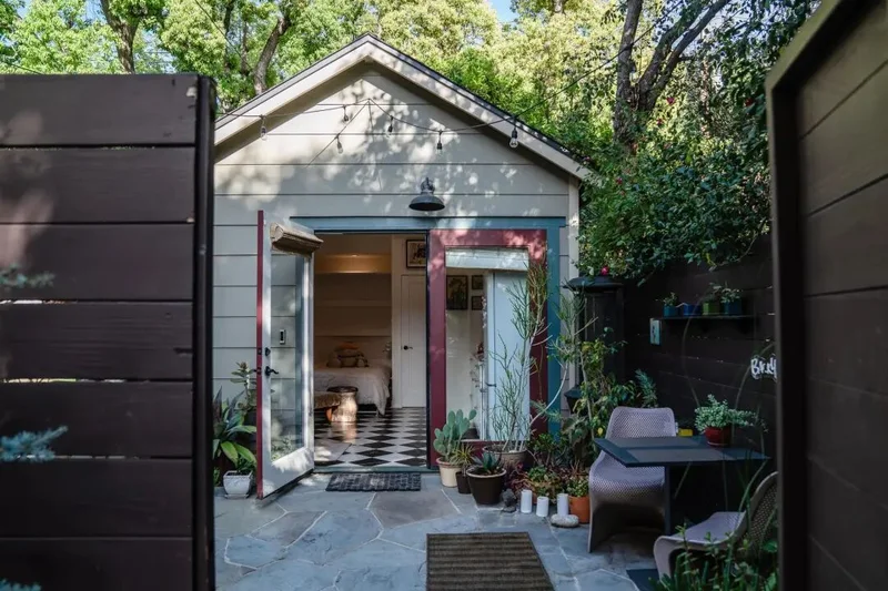 在租金飞涨的洛杉矶,传统的居住梦想正被现实重新塑设。住在南帕萨迪纳的蒂娜和沃伦夫妇,最近就把家里一个建于1917年、原本只能停放福特T型车的21平方米旧车库,变成了一场关于家庭生存的实验。他们花了大约12.5万美元进行改造,最初这间小屋只是为了给当律师兼摇滚乐手的沃伦当琴房,结果却意外成了两个女儿在职场起步阶段的“救生圈”。