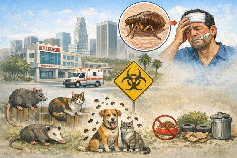 斑疹伤寒是一种由细菌引起的传染病,主要透过受感染跳蚤叮咬传播,症状轻重不一,严重时可致命。卫生官员警告,该病已在社区广泛流行,即便家中未饲养宠物,民众仍存在感染风险。洛杉矶县公共卫生局流行病学医师Aiman Halai表示,相关病例逐年攀升,且遍及全县各地,情况不容轻忽。