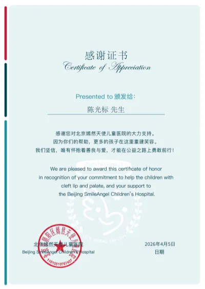 4月7日,嫣然医院官方发布感谢证书,张雪也在评论区写下:“标哥真男人,为你点赞。”